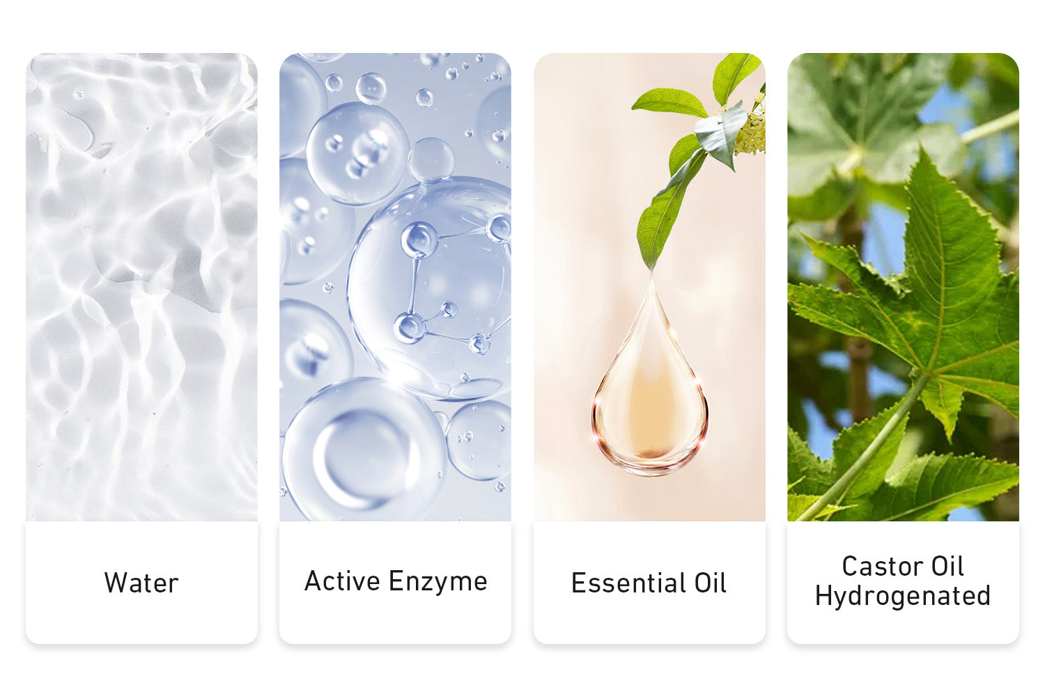 Crafted from a blend of water, active enzyme, essential oil, and hydrogenated castor oil, ensuring a completely natural and non-harmful formulation