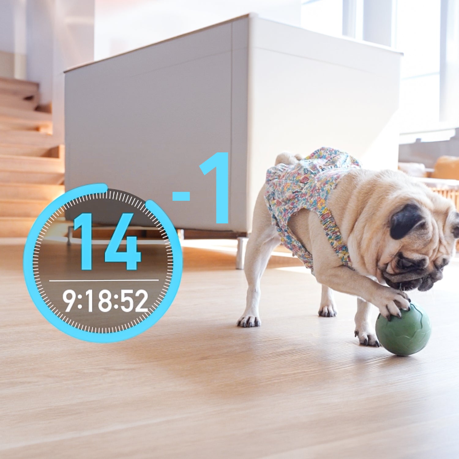 During each 10-minute session, your pet will receive treats only after 60 interactions.