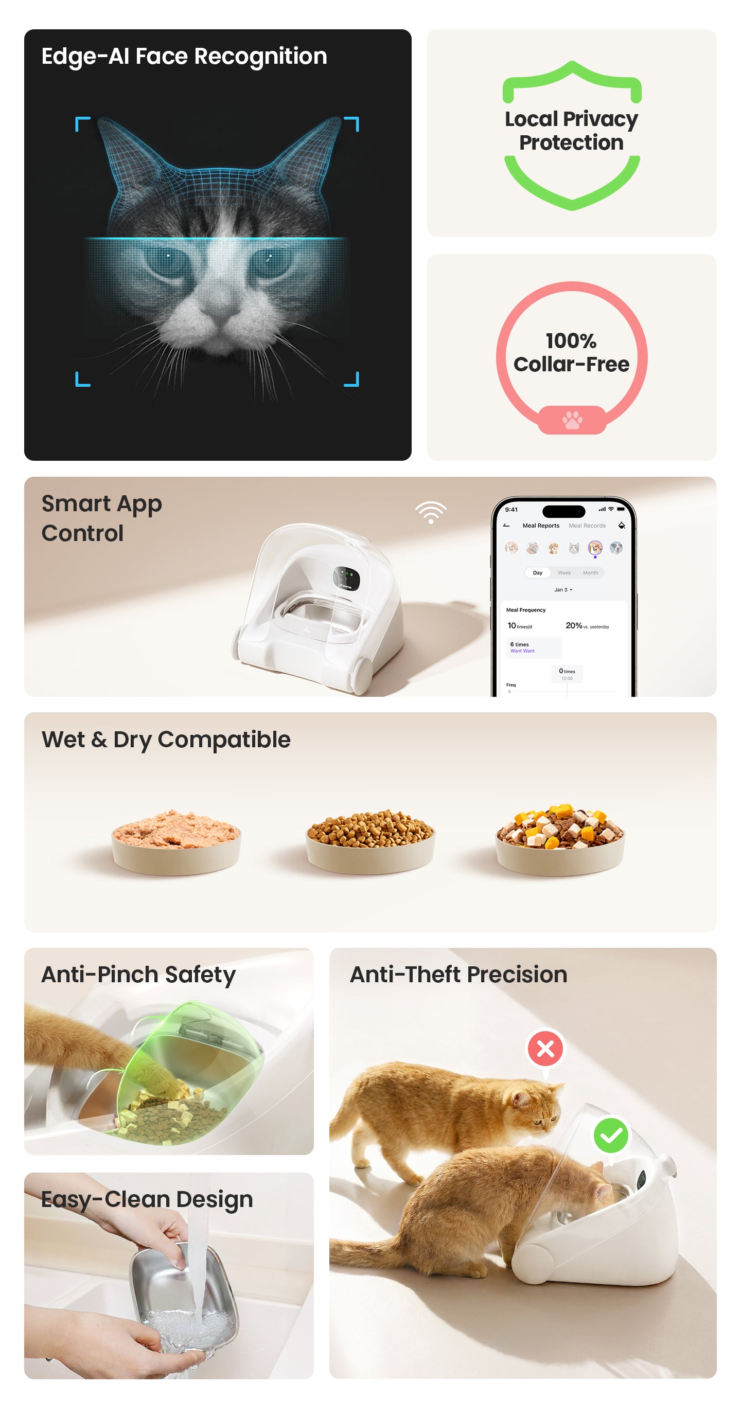 Built with a fully enclosed feeding dome and anti-sneak architecture, Match G1 ensures only one cat gets access at a time. No side gaps, no back doors, no chances for clever paws.