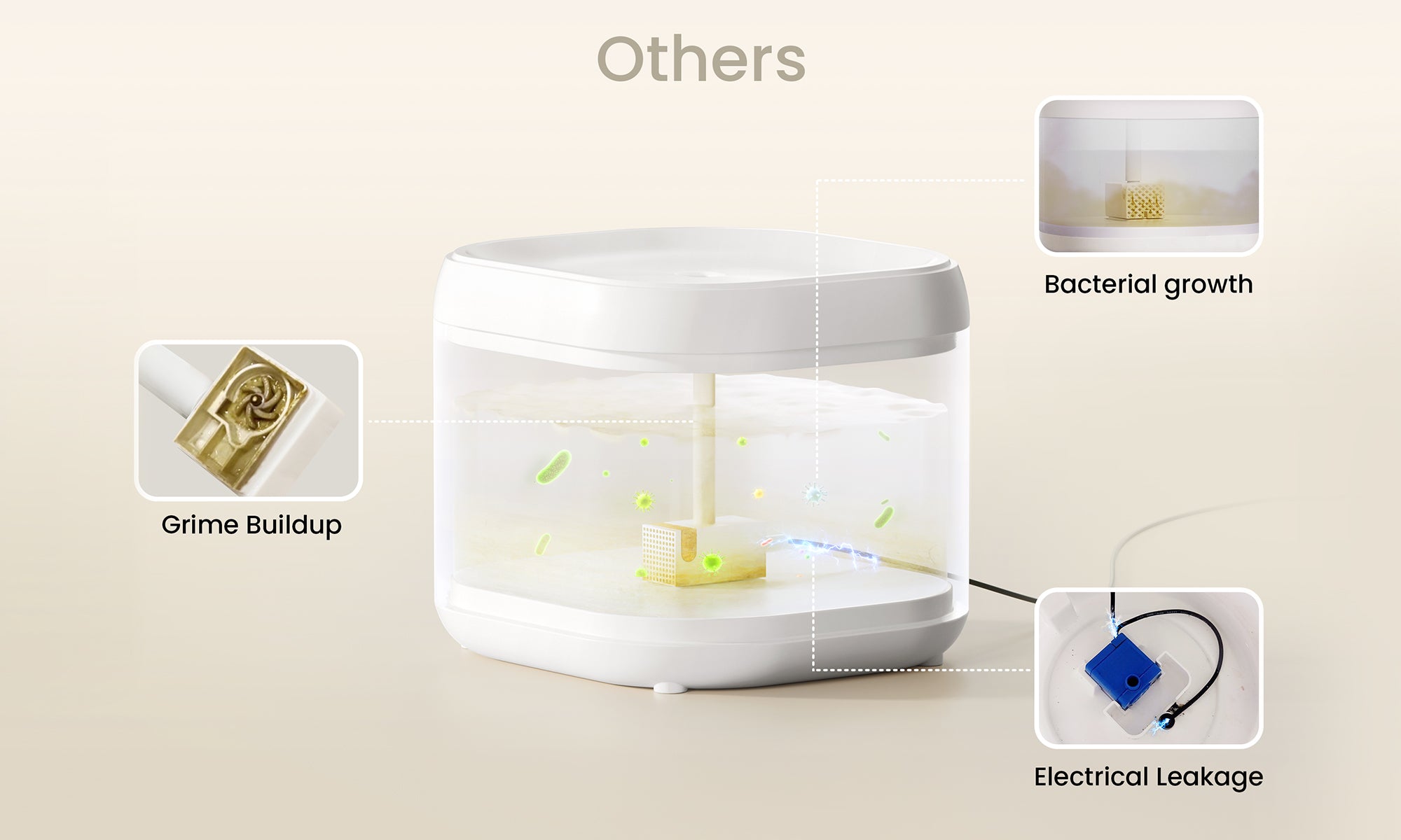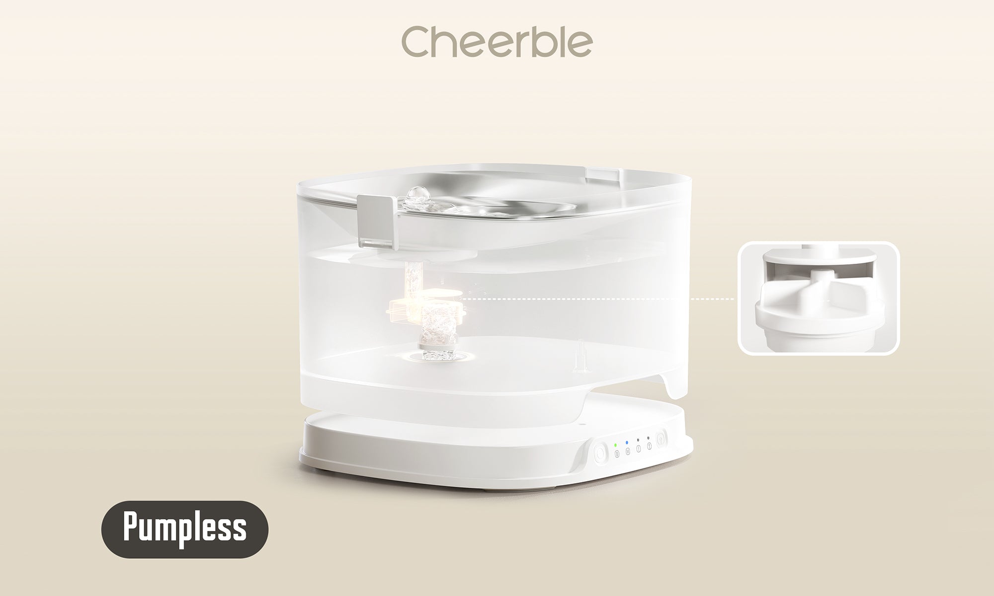 ‘Pumpless’ in the context of our fountain refers to the elimination of a conventional submerged pump, which is a common source of noise and maintenance hassle in traditional pet fountains. Instead, we use a magnetically driven impeller. This innovative design simplifies cleaning, reduces noise, and enhances the safety of the water your pets drink. By rethinking the way water is circulated, we've managed to keep the benefits of a pump—like water movement and filtration—without the usual complications.