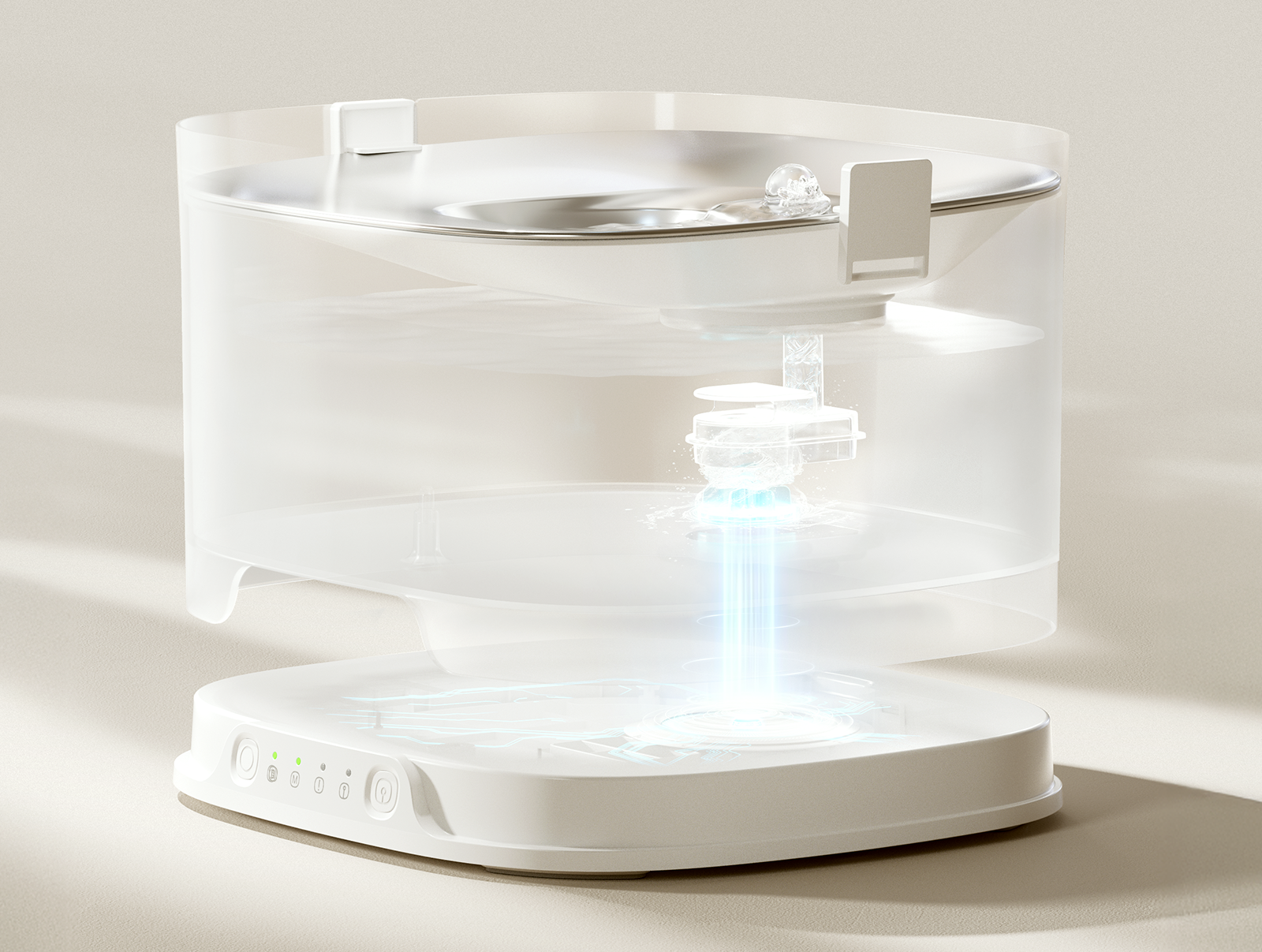 ‘Pumpless’ in the context of our fountain refers to the elimination of a conventional submerged pump, which is a common source of noise and maintenance hassle in traditional pet fountains. Instead, we use a magnetically driven impeller. This innovative design simplifies cleaning, reduces noise, and enhances the safety of the water your pets drink. By rethinking the way water is circulated, we've managed to keep the benefits of a pump—like water movement and filtration—without the usual complications.