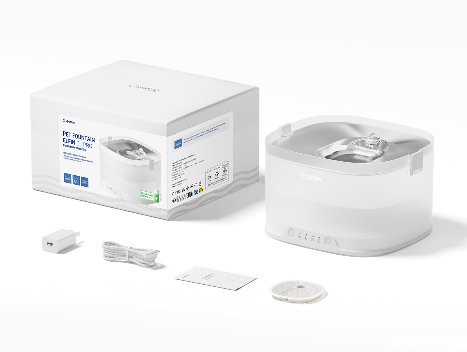 We recommend cleaning the Pet Fountain Elfin D1 Pro once a week. However, cleaning the Pet Fountain Elfin D1 Pro is not like a chore. All you need to do is take the water tank away from the base, disassemble the parts (the water tray, the tank, the conduit, and the impeller), and rinse and scrub them to clean. It's as easy as a breath, and there's no pump to worry about!