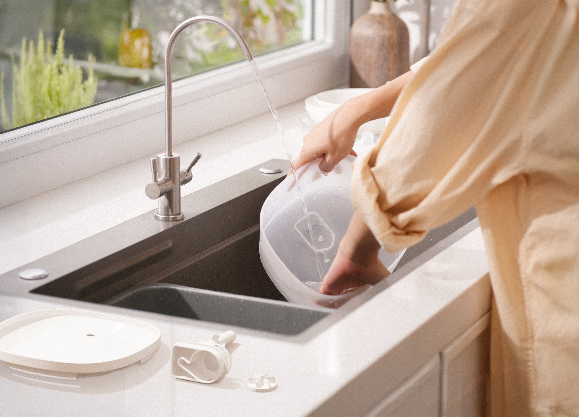 Separates all electronic components from water with detachable tank. Rinse it in seconds or toss it in the dishwasher for an easy clean.